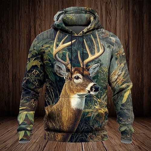 Per uomo Illusione ottica Cervo Felpa con Cappuccio Felpa Moda 3D Fantasia Manica Lunga Girocollo Casa Feste Abbigliamento casual alla moda Blu Marrone Verde Coulisse Autunno Inverno progettista S M