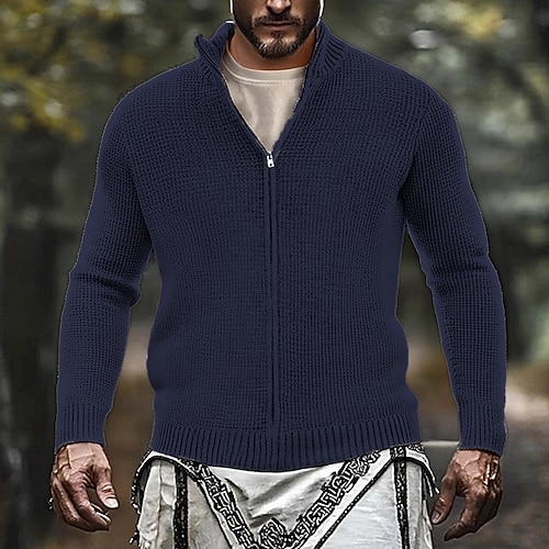 Per uomo Cardigan Maglione con Zip Maglione Corto Maglione a maglia Giacca cardigan A Coste Spesso Maglia Top Regolari Lavorato a maglia Colore Solido / Tinta Unita Dolcevita Moda Classico Vacanza