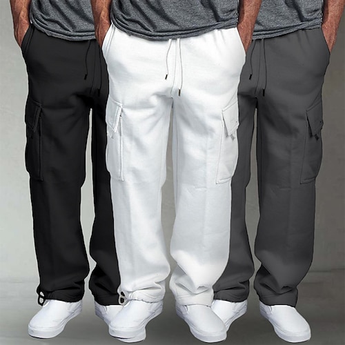 Per uomo Pantaloni da Tuta Cargo Pantaloni in Pile Joggers Pantaloni Pantaloni della tuta a gamba dritta Coulisse Elastico in vita Multi-tasche Tinta unica Antivento All'aperto Lunghezza intera