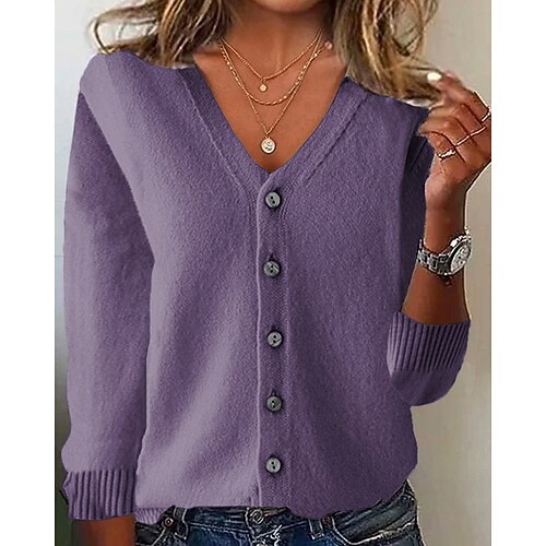 Per donna Cardigan Casual Tinta unica Spesso Scollo a V Lavorato a maglia Manica Lunga Top Regolari Maglia Quotidiano Ferie Uscire Rosa Viola Autunno Inverno