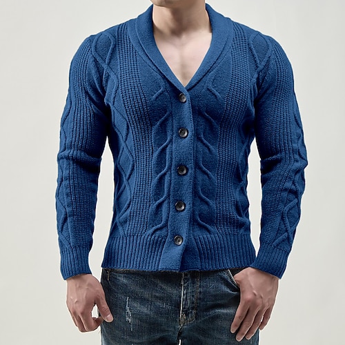 Per uomo Felpa Cardigan A Coste Treccia Maglia Top Regolari Cardigan con Bottoni Lavorato a maglia Tinta unica Collo a scialle Vacanza Moda Casuale Abbigliamento quotidiano Abbigliamento Primavera