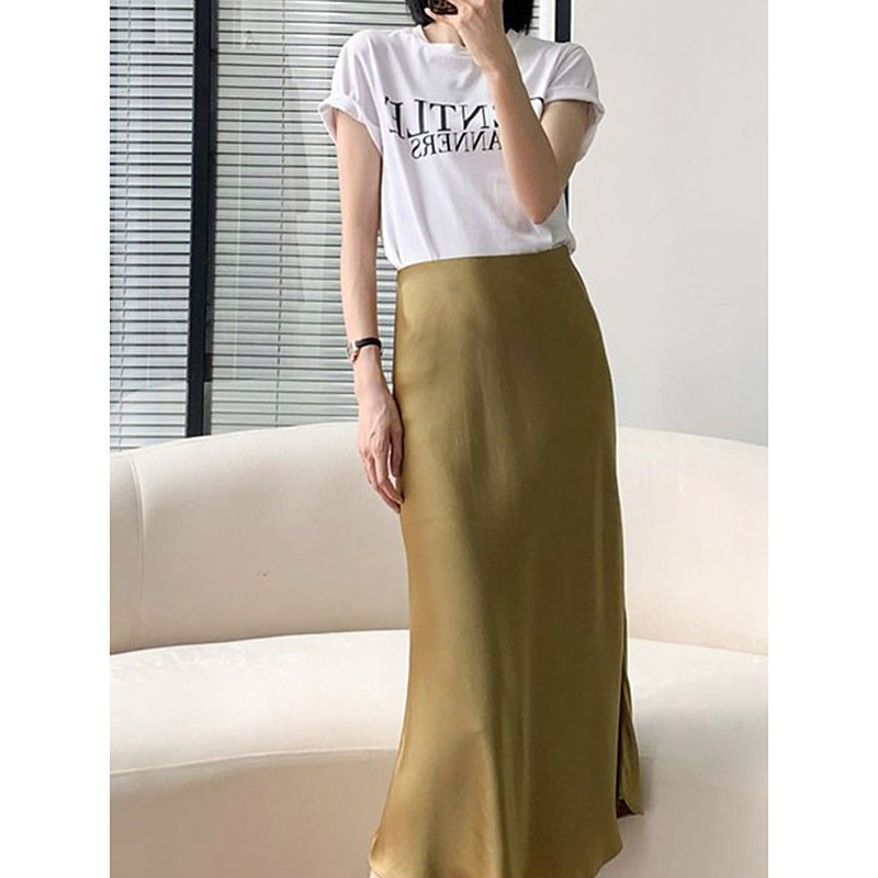 Women's Skirt A Line Fashion Casual Mini High Waist Skirts Plain Inelastic Street Daily Black Champagne Pink Red Summer Satin Polyester
