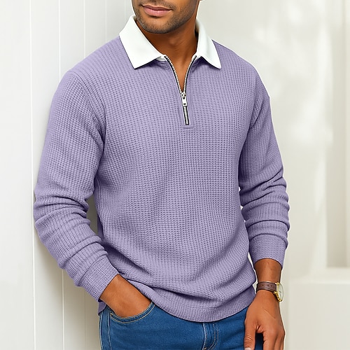 Per uomo Polo con zip Testurizzato All'aperto Uscire Collo ripiegato Zip a un quarto Manica Lunga Abbigliamento Sportivo Casual Tinta unica A righe Patchwork Cerniera Primavera Autunno Vestibilit