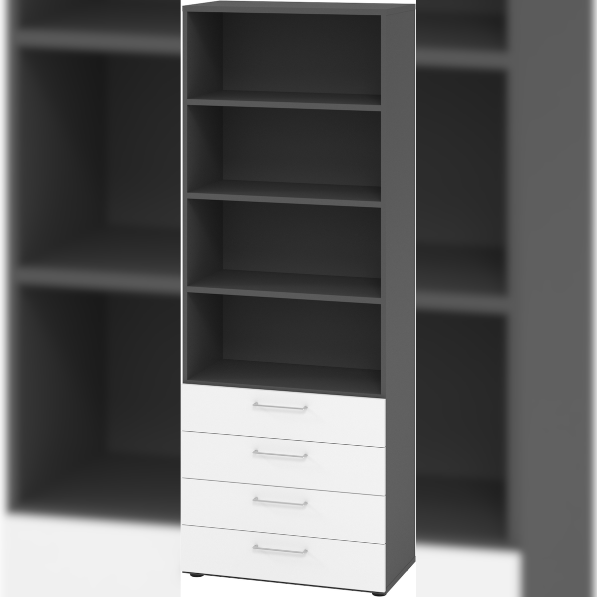 bümö smart Schubladenschrank, Büroschrank 80cm breit in Graphit/Weiß mit 4 Schüben & 4 Regalfächern - Bürocontainer aus Holz, Container mit