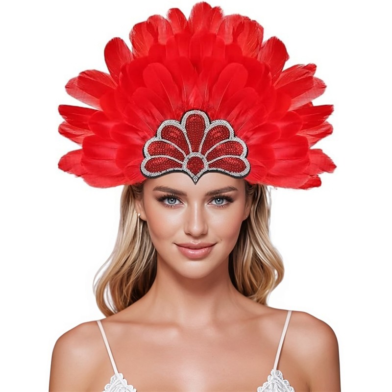 Carnival 2026Rio Carnival Samba Accessories Red and Black Feather Headdress for Women Mardi Gras Festival Dance Accessory Brazil Festival Performance Costume