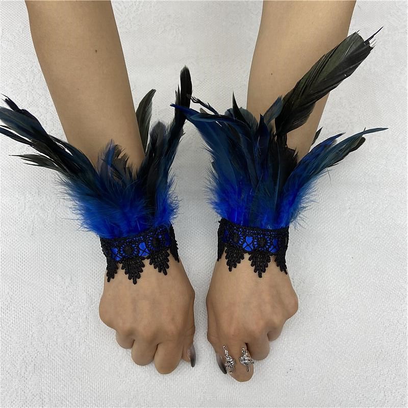 Carnival 2026Rio Carnival Samba Accessories Black Feather Cuffs with Lace Trim - Elegant Wristbands Gatsby Parties, Brazil Festival Performance Costume