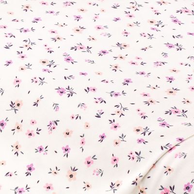 Tissu jersey de coton "fleurs" avec élasthanne, blanc-coloré