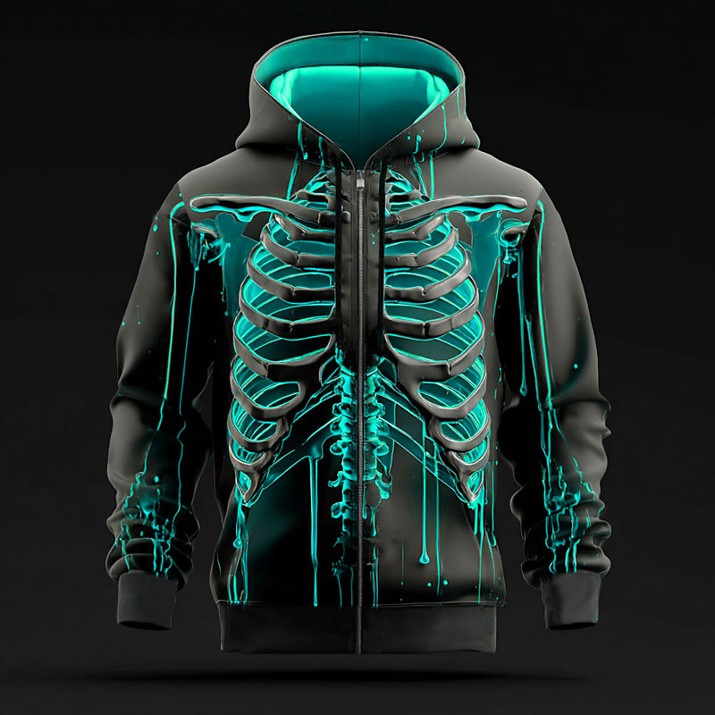 Men's 3D Skeleton Hoodie Sweatshirt Punk Cool Gothic Long Sleeve Crew Neck Party Gift Streetwear Red Blue Orange Green Drawstring Zipper Fall Winter Designer S M L XL XXL XXXL