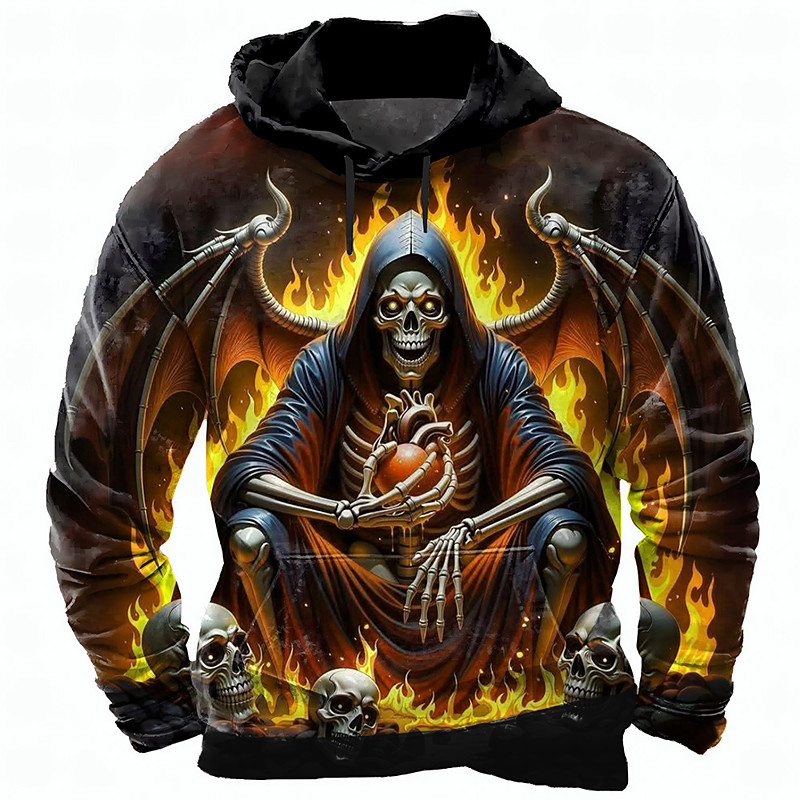 Men's Grim Reaper Reaper Hoodie Sweatshirt Punk Exaggerated Gothic Casual Long Sleeve Crew Neck Hooded Club Streetwear Yellow Red Green Drawstring Fall Winter Designer S M L XL XXL XXXL