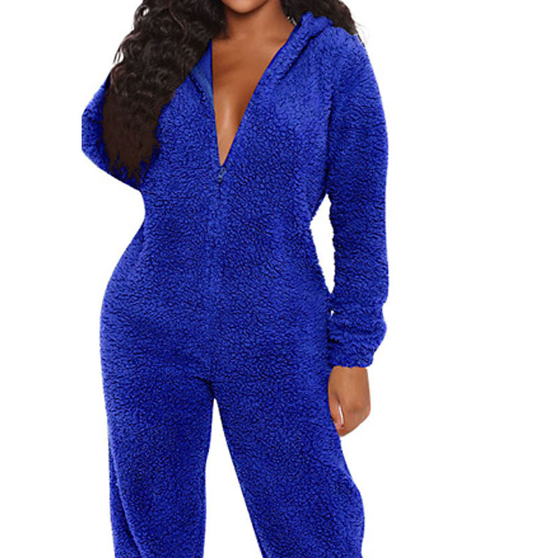 Women's Loungewear Onesie Warm Fashion Sexy Pure Color Zipper Hoodie Pant Vacation Home Street Sleeveless Crew Neck Blue Black White Red Brown Fall Winter Regular Fit