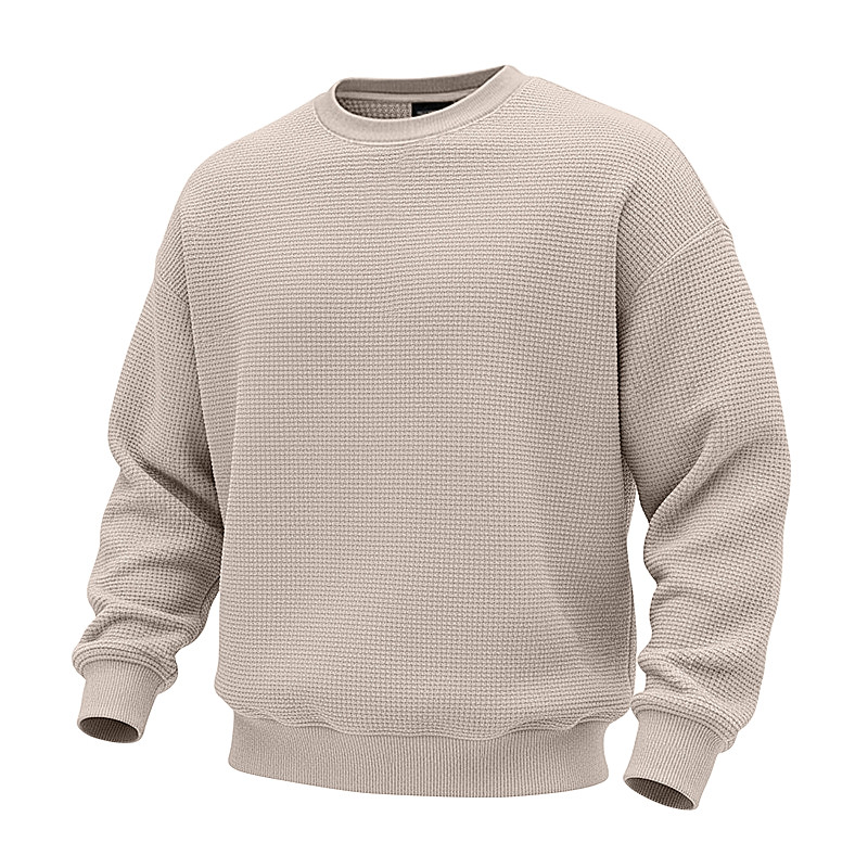 Men's Sweatshirt Waffle Sweatshirt Pullover Hoodie Sweatshirt Apricot White Light Green Navy Blue Purple Crew Neck Plain Textured Casual Daily Sports Outdoor Streetwear Cool Sportswear Spring