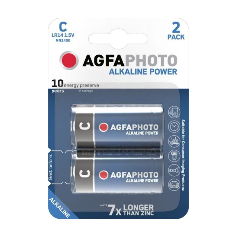 AGFAPHOTO Batterie Alkaline, Baby, C, LR14, 1.5V Power, Retail-Blister (2er-Pack)