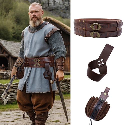 Medievale Rinascimento Abiti Cintura in Vita Borsello da Cintura Guerriero Vichingo Costume Per uomo Vichingo Halloween Carnevale Performance LARP Fiera Rinascimentale Adulti Gilet Borsa Cintura