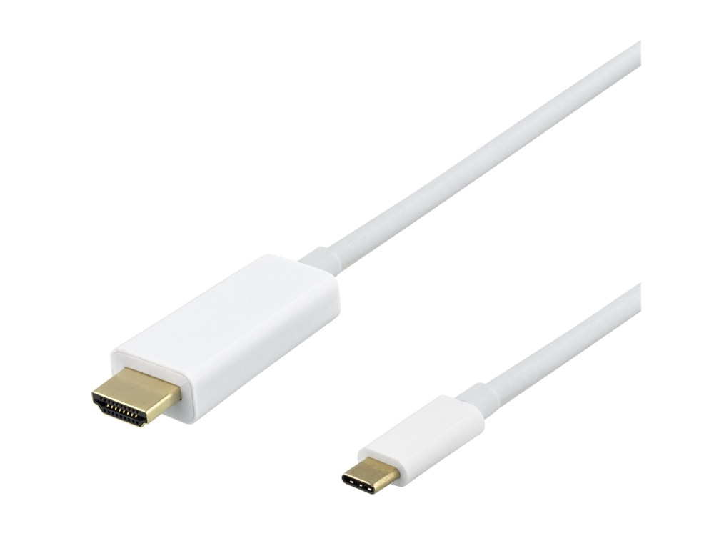 DELTACO - Adapterkabel - 24 pin USB-C han til HDMI han - 1 m - hvid - 3D video support, 4K UHD support, HDCP 2.2 understøttelse