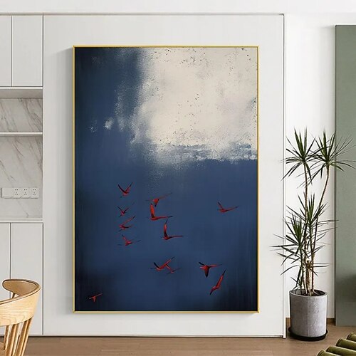 dipinto ad olio fatto a mano su tela decorazione murale cielo blu uccello rosso dipinti astratti texture per arredamento casa sala da pranzo telaio teso appeso/arrotolato senza cornice non teso