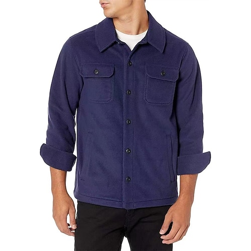 Per uomo Giacca-camicia Giacca camicia Giacca invernale Plaid Vacanza Abbigliamento quotidiano Nero Azzurro cielo Manica Lunga Bavero Autunno Inverno Abbigliamento Tasca Frontale