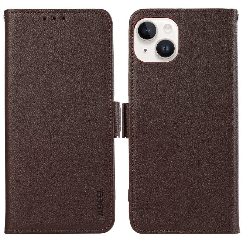 ABEEL iPhone 15 Plus Plånboksfodral Konstläder RFID-Skydd Brun
