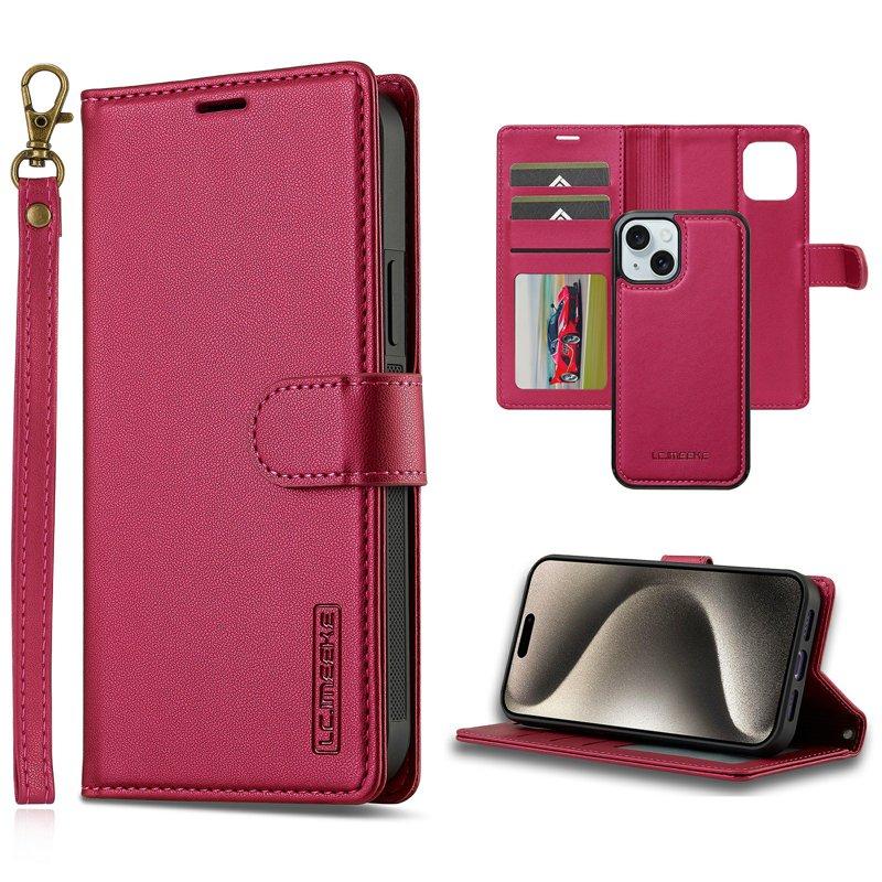 LC.IMEEKE L2 Series iPhone 15 Plånboksfodral Konstläder - Röd