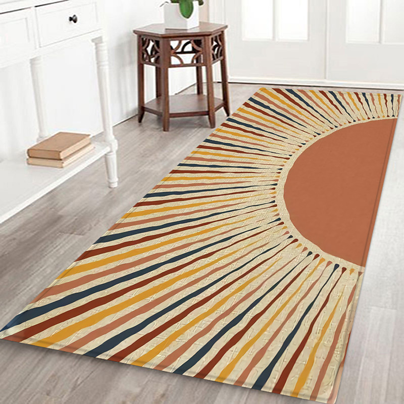 Hallway Runner Rug Geometric Art Pattern Flannel Fabric Printed Home Floor Decoration Mat Non Slip Soft Door Mat Entrance Bathroom Floor Rug