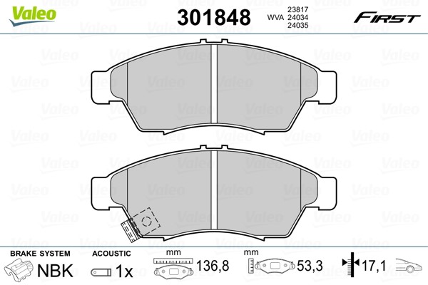 Jarrupalasarja, levyjarru, Etuakseli Valeo 301848 - suzuki liana, liana halvkombi - OE 5581054G00, 55810-54G00, 5581054G50