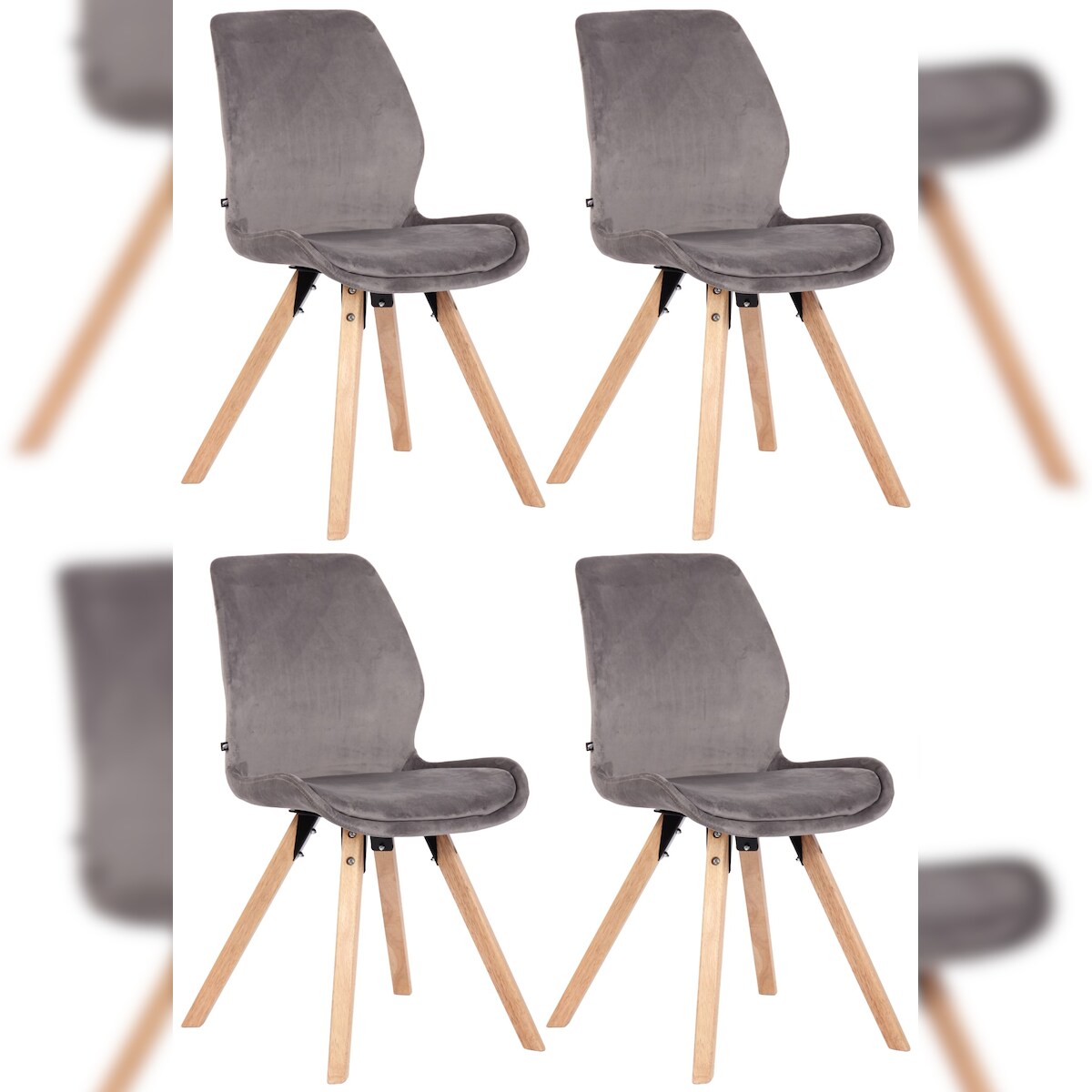 CLP 4er Set Stuhl Luna grau/Samt