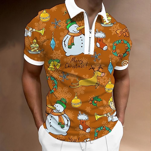 Weihnachten Herren Weihnachtsszene 3D Reißverschluss Polo Golf Schneemann Kragen gelb rosa rot blau hellviolett Outdoor Straße Kurzarm Reißverschluss Druck Kleidung Bekleidung Mode Streetwear