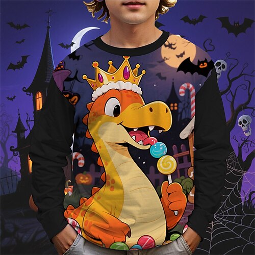 Halloween Jungen 3D Cartoon Kürbis Dinosaurier T-Shirt Langarm Frühling Herbst Mode Basic Kinder 4-12 Jahre Rundhalsausschnitt Outdoor Lässig Täglich Normale Passform