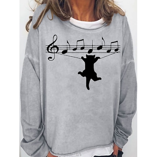Per donna Felpe Grafico Gatto Vintage Moda Casual Manica Lunga Girocollo Top Regolari Streetwear Casuale Stampato Blu Cachi Grigio Autunno Inverno