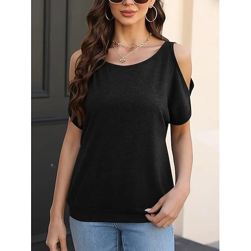 Per donna Top con spalle scoperte Maglietta Moda Classico Casual Manica Corta Collo a U Top Regolari Quotidiano Uscire Weekend Nero Verde militare Blu marino Estate Primavera