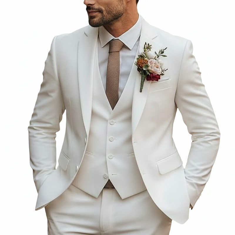 Men's Wedding Suits Notch Black White Solid Colored Standard Fit 3 Piece Single Breasted One-button