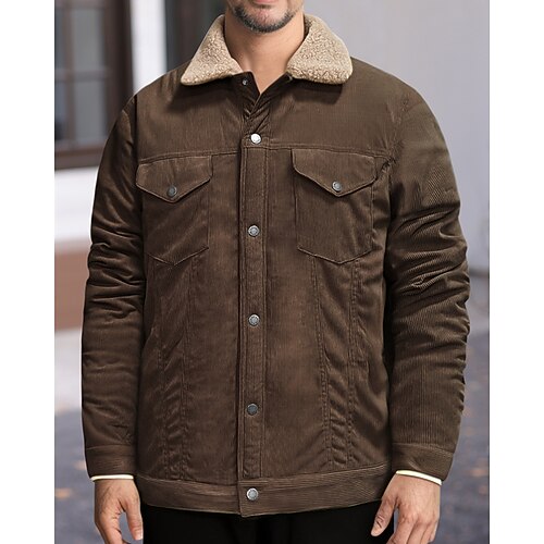 Per uomo Giacca Invernale Giacca in Velluto a Coste Giacca in Pile Giacca Casual Vacanza Quotidiano Calore Termico Tasca Pile Inverno Semplice Moda Streetwear Bavero Regolare Nero Verde chiaro Blu