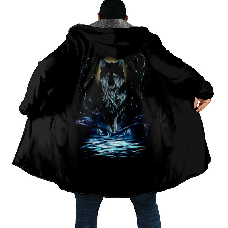 Men's Animal Patterned Winter Coat Fleece Jacket Coat Thermal Warm Comfortable Casual Daily Wear Zipper Pocket 3D Print Fall Winter Hooded Long Sleeve Black 1 Black Gray