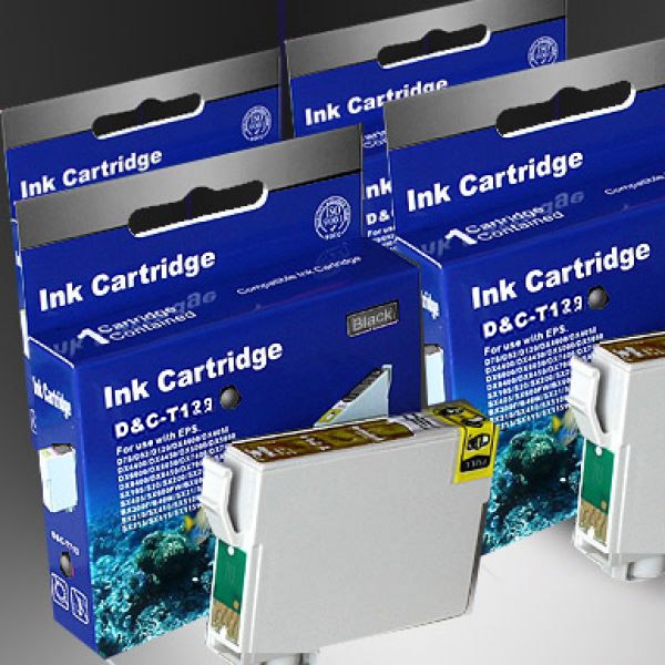 Kompatibel 4x Epson T1291, Apfel, T129, C13T12914010 BK Black Multipack schwarze Druckerpatronen je 380 Seiten von D&C