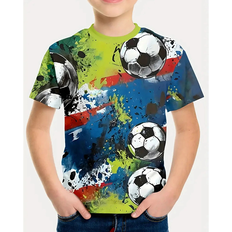 Boys 3D Football T shirt Tee Short Sleeve Summer Spring Fashion Basic Kids 4-12 Years Crew Neck Outdoor Casual Daily Regular Fit