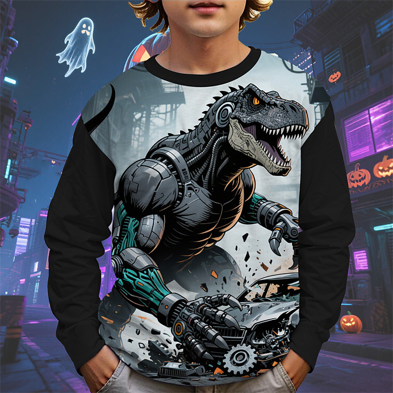 Halloween Boys' 3D Cartoon Pumpkin Dinosaur T shirt Tee Long Sleeve Spring Fall Fashion Basic Kids 4-12 Years Crew Neck Outdoor Casual Daily Regular Fit