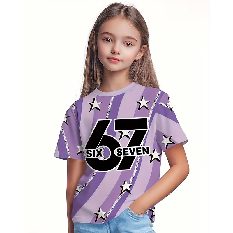 Girls' 3D Graphic Funny Slang 67 T shirt Tee Short Sleeve 3D Print Summer Spring Sports Fashion Streetwear Kids 4-12 Years Crew Neck Outdoor Casual Daily Regular Fit