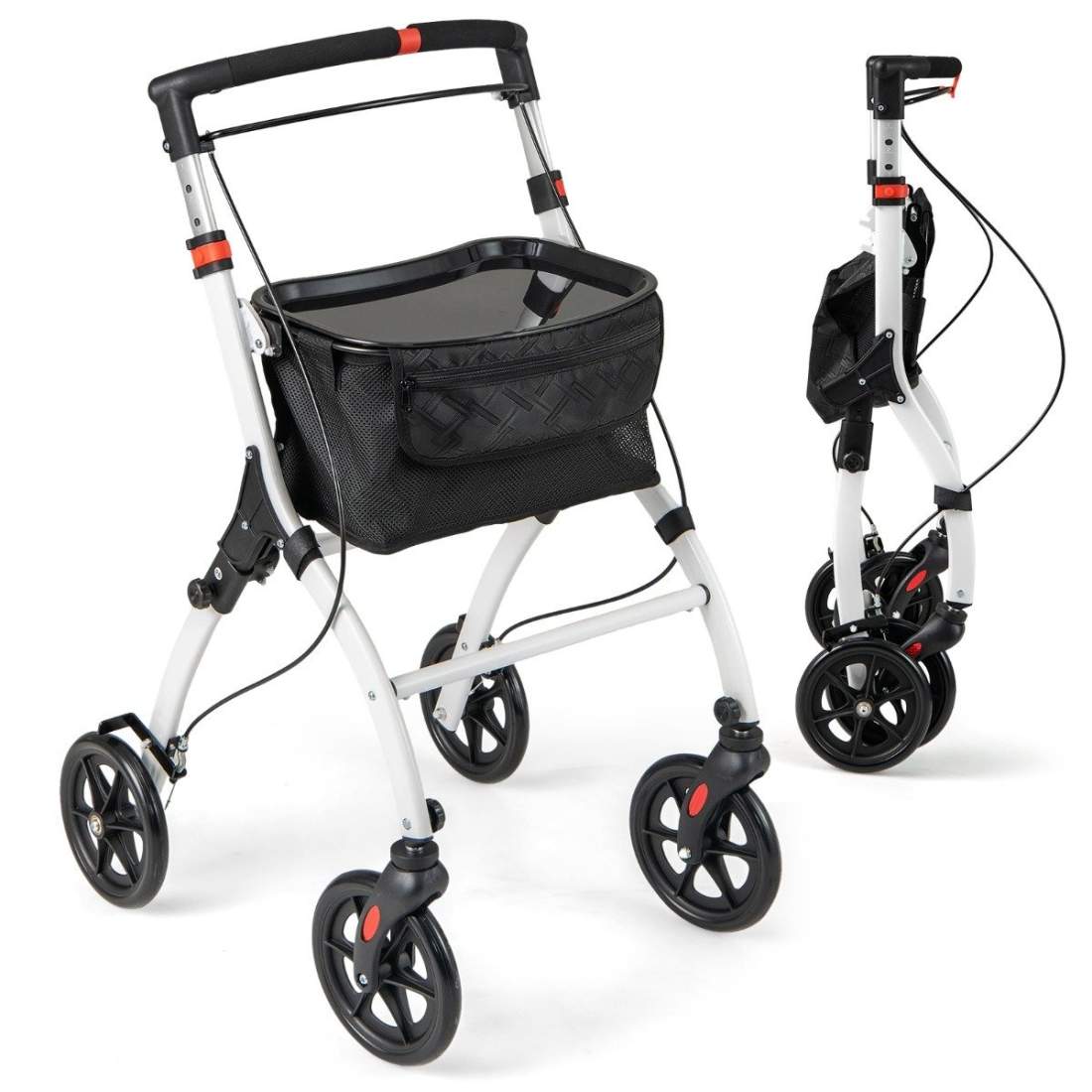Smal rullator med 5-veis høydejustering & brett & 4 hjul & bremser ganghjelp