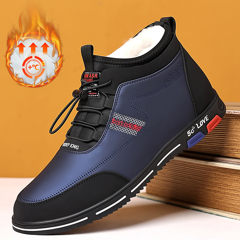 Men's Winter Warm Lined Casual Sneakers – Waterproof Lace-Up High Top Shoes with Plush Lining, Anti-Slip Sole, Ideal for Outdoor and Cold Weather