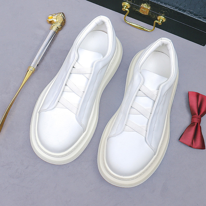 Men's Faux Leather High-Top Sneakers – Hand-Stitched White Lace-Up Shoes with Buckle Detail and Durable Sole for Casual and Urban Fashion