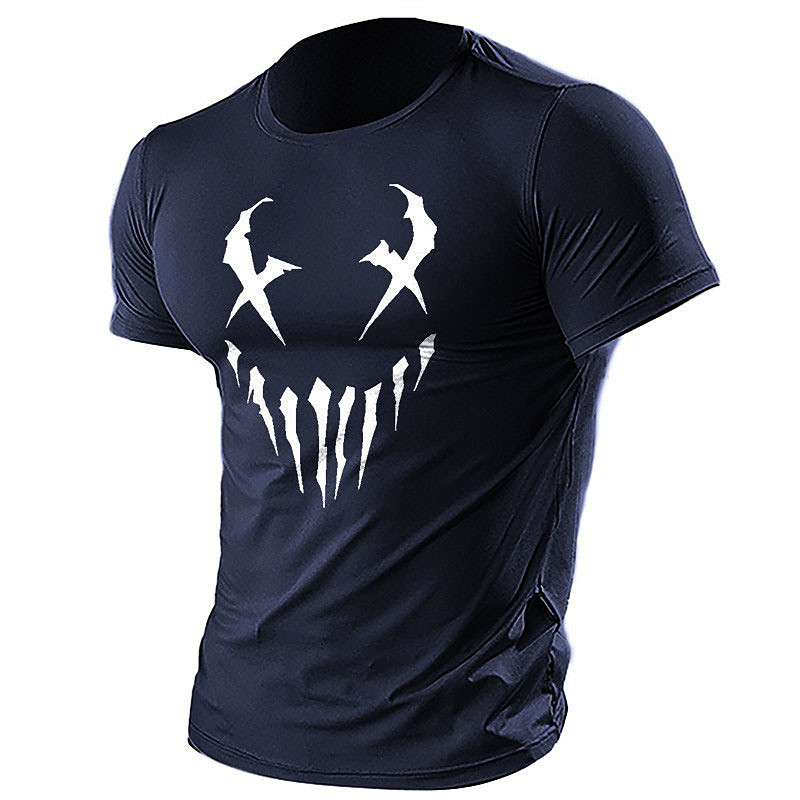 Men's Short Sleeve Graphic T-Shirt with Abstract Scary Face Design, Ideal for Gym Casual Wear