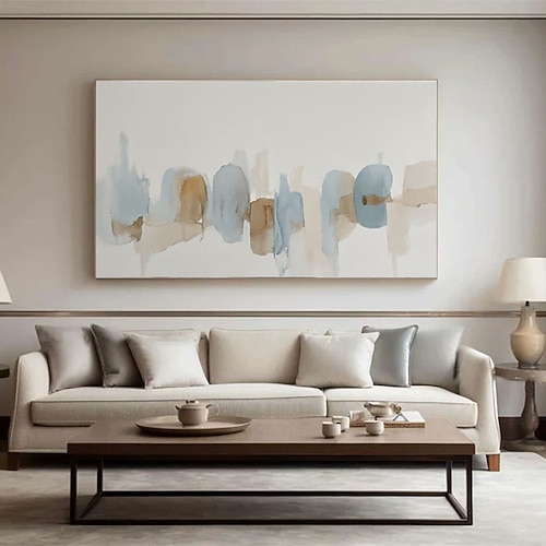 dipinto astratto blu beige di grandi dimensioni fatto a mano su tela, grande arte murale beige e blu, arte murale wabi sabi beige con texture, dipinto beige, arte con texture marrone