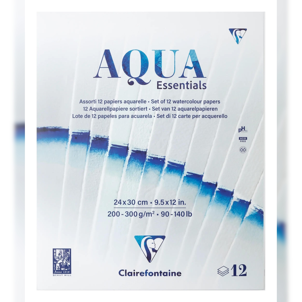Clairefontaine 2x Aqua Essentials, Block geleimt, 12 Aquarellpapiere sortiert, 24x30cm 12 Blatt 200g-300g - 976099C
