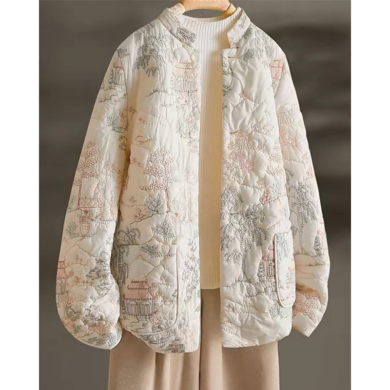 Women's Winter Coat Parka Warm Comfortable Pocket Fashion Casual Floral Vacation Casual Daily Wear Going out Regular Stand Collar Regular Fit Long Sleeve Outerwear White Light Green Pink Fall Winter