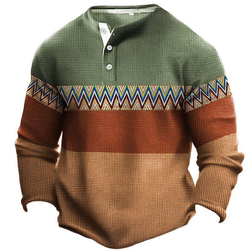 Men's Ethnic Shirt Button Up Shirt Long Sleeve Vintage Casual Tribal Vacation Daily Summer Spring Fall Standing Collar Button Up 3D Print Blue Green Khaki Gray