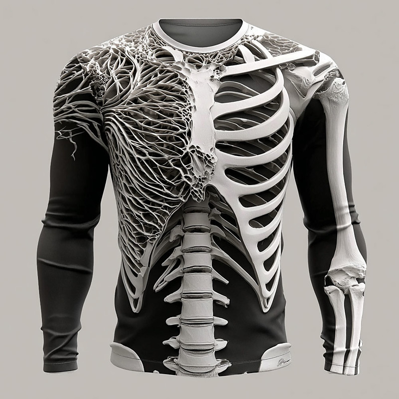 Halloween Men's 3D Skeleton T Shirt Long Sleeve T shirt 3D Print Crew Neck Shirt Fashion Exaggerated Street Casual Daily Blue Orange Green Summer Spring Fall Clothing Apparel S M L XL XXL XXXL