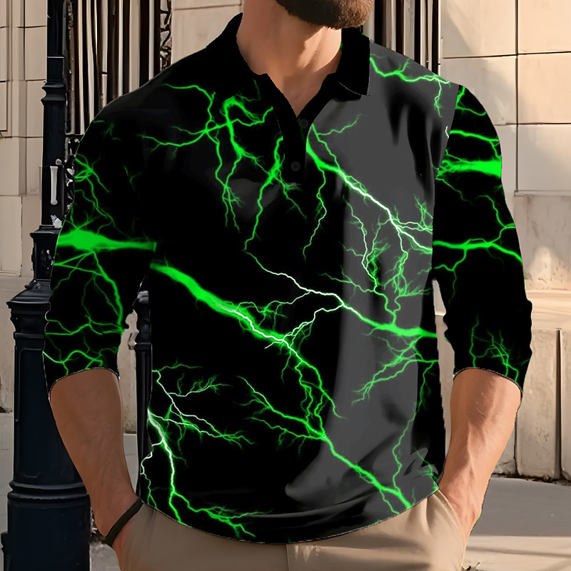 Men's Lightning Polo Long Sleeve Polo Shirts Lapel Casual Outdoor Street Athleisure Daily Wear 3D Print Buttons Spring Fall Winter Yellow Red Green