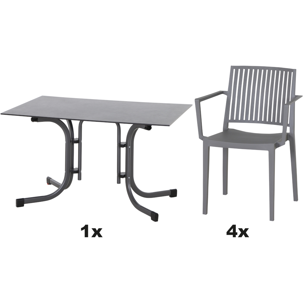 SIENA GARDEN Urban Lights Set 5teilig Lane Sessel gastrotauglich grau mit Tisch Sola 120x80