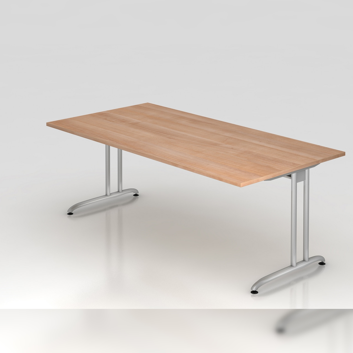 PROREGAL Schreibtisch Markku | Asteiche | BxT 180x80cm | Arbeitshöhe 72cm | höhenjustierbar 0-10 mm | C-Fuß-Gestell Silber | Bürotisch