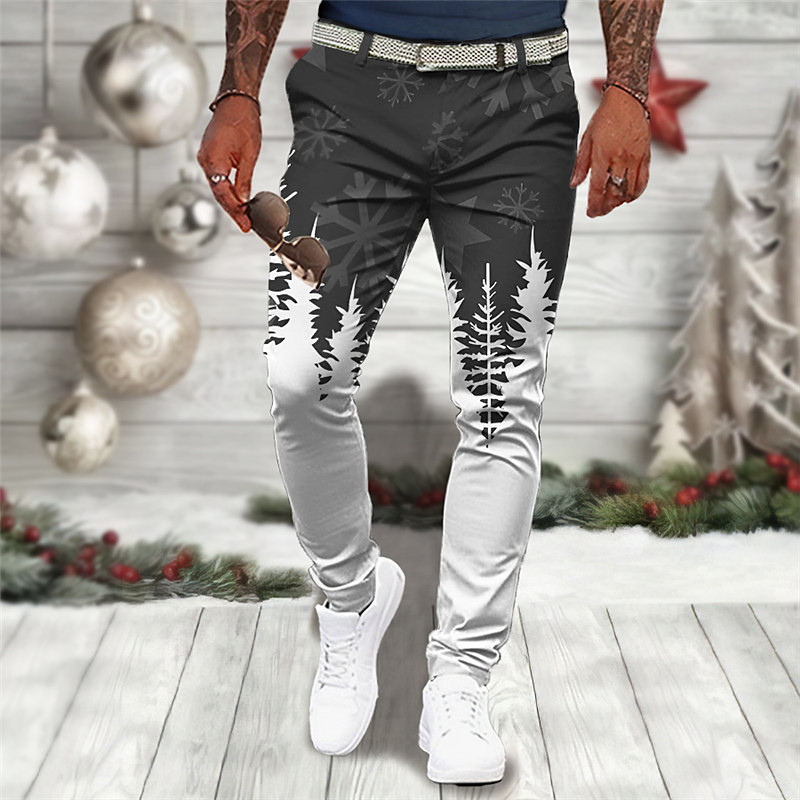 Christmas Men's Christmas tree Printed Pants Business Casual 3D Print Dress Trousers Outdoor Daily Wear Streetwear Polyester Wine Blue Orange S M L Medium Waist Elasticity Pants