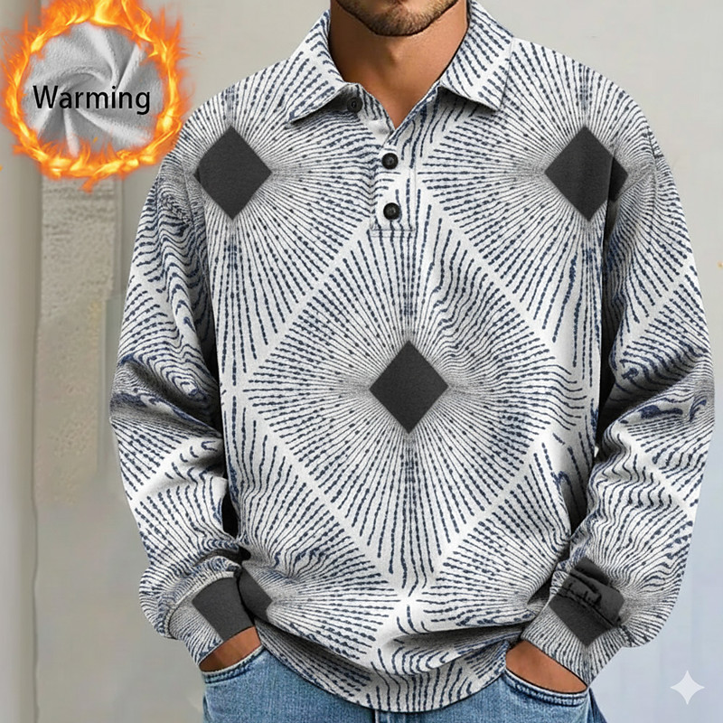 Men's Geometric Abstract Polo Shirts Themmal Shirts Long Sleeve Polo Shirts Lapel Casual Athleisure Holiday Daily Wear 3D Print Fall Winter Blue White Gray